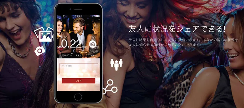 スマートフォンアプリで体内のお酒の状況が一目瞭然! 運転する人もしない人も、飲み会の強い味方、 『FLOOME(ミルフィー)』が登場。