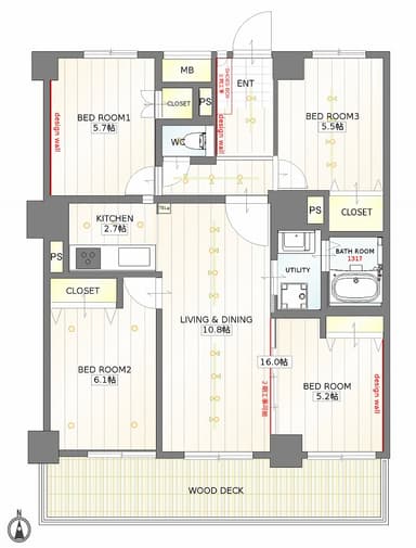 部屋数が必要な方には、5.5帖の洋室も確保できます。ご家族が多い方、書斎や裁縫などインドアの趣味のためにお部屋がほしい方には、このプランがお勧めです。