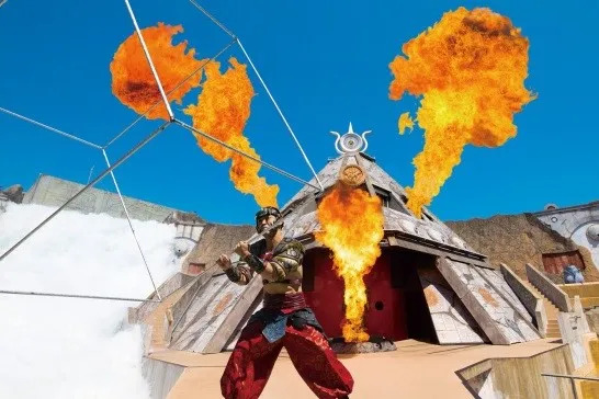 今は荒果てた「タルテス帝国の遺跡」を舞台に、大迫力の炎と洪水、パルクール、エアリアル等のアクロバティックなパフォーマンスが織りなすライブスペクタクル。