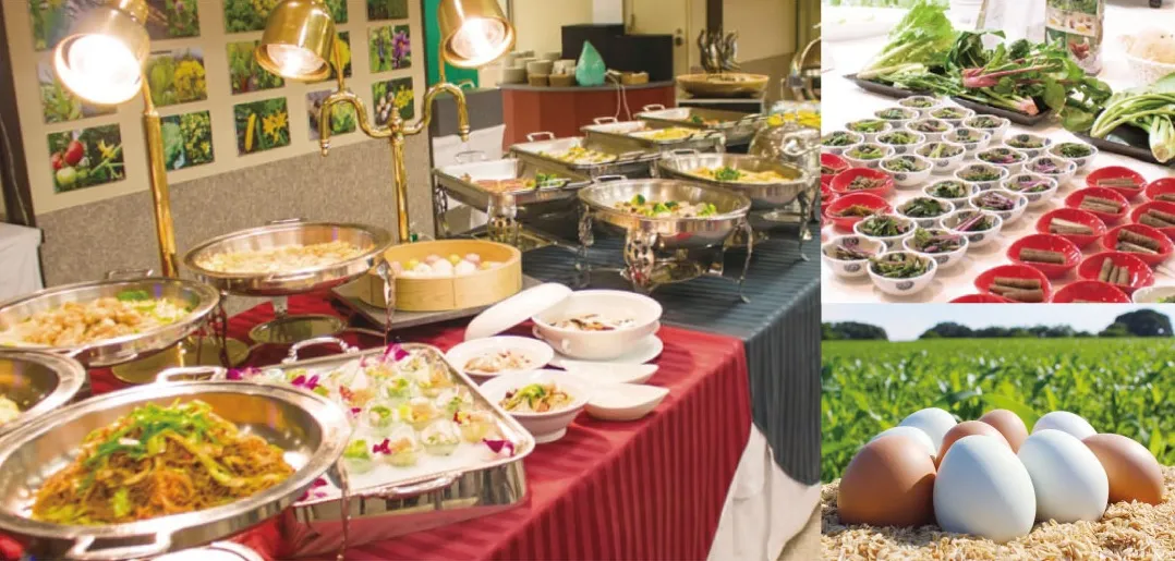 「レストラン東北牧場」の一番の特徴である、グループ会社「東北牧場」の完全無農薬・無化学肥料の野菜とアニマルウェルフェア対応の卵を使用した料理に加え、ディナービュッフェでは注目されつつある野草を使用したメニューもご提供いたします。