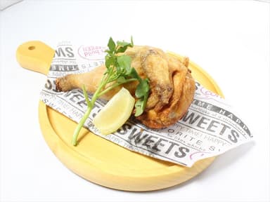 『生後60日未満のひな鶏』のみを使うことにより、柔らかな肉質を保つことができます。また、1年間かけて開発した『特製オイル』にひな鶏を漬け込むことにより、肉質の柔らかさはそのまま、ジューシーさを閉じ込めることに成功しました。