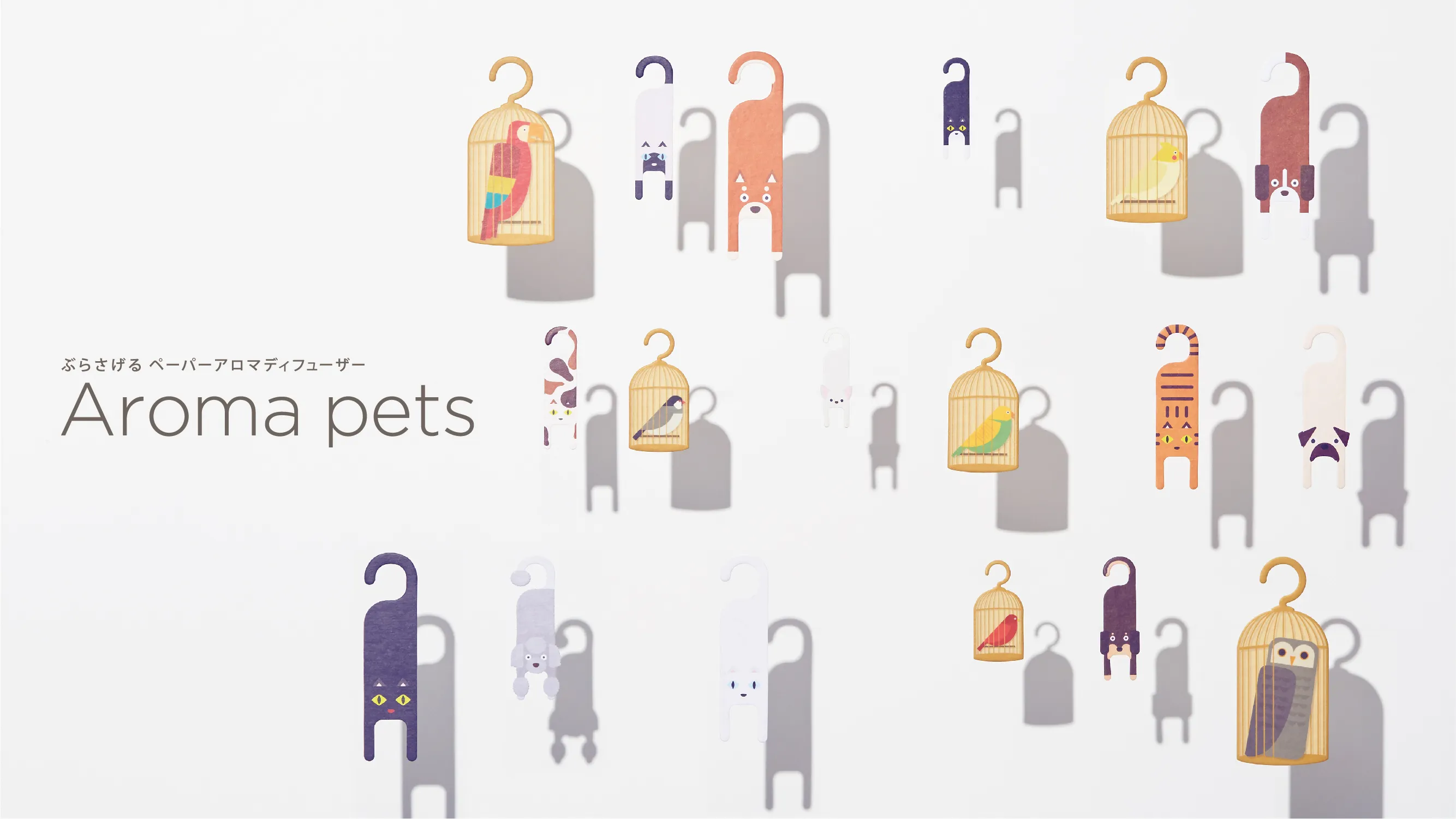 TAKI PRODUCTSのペーパーアロマディフューザー、「Aroma pets(アロマペッツ)」は、部屋のいろいろな所にぶら下げるだけで、いい香りが広がります。フックの形になっているので、お部屋のどのような場所でもOK。紙でできているので、電源を気にせずご使用いただけます。