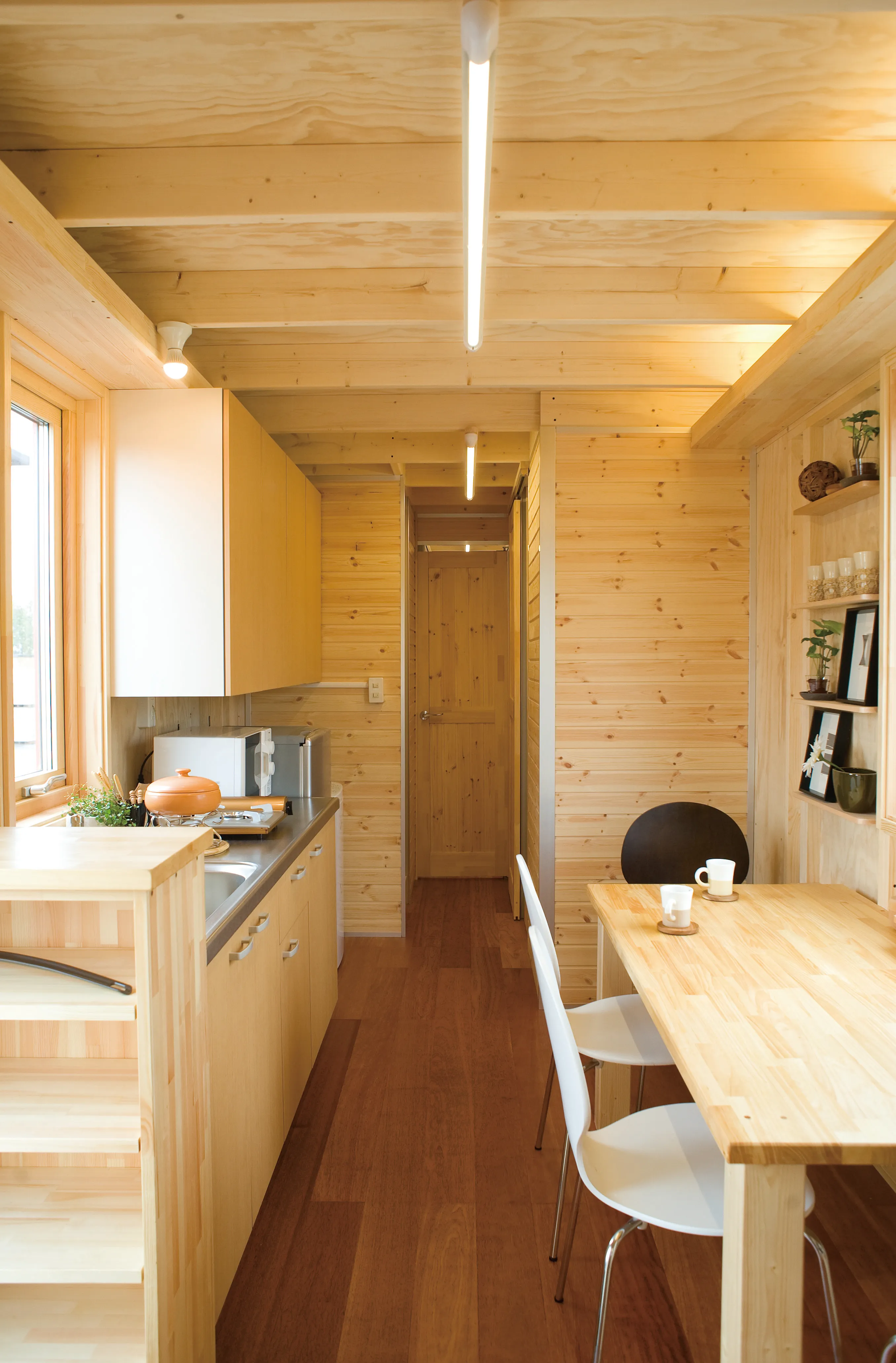 無垢材を用い、その個性を活かすため接着剤等は使用していません。天然木本来の風合いが楽しめるクリーンな室内環境は、森林浴をしているかのような健やかな住環境を実現します。北海道で培った優れた断熱性は折紙付き、夏は涼しく冬は暖かい空間を生み出します。