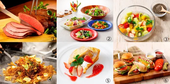 鉄板焼きコーナーでは、シェフが目の前で出来たて料理をご提供(写真(4))