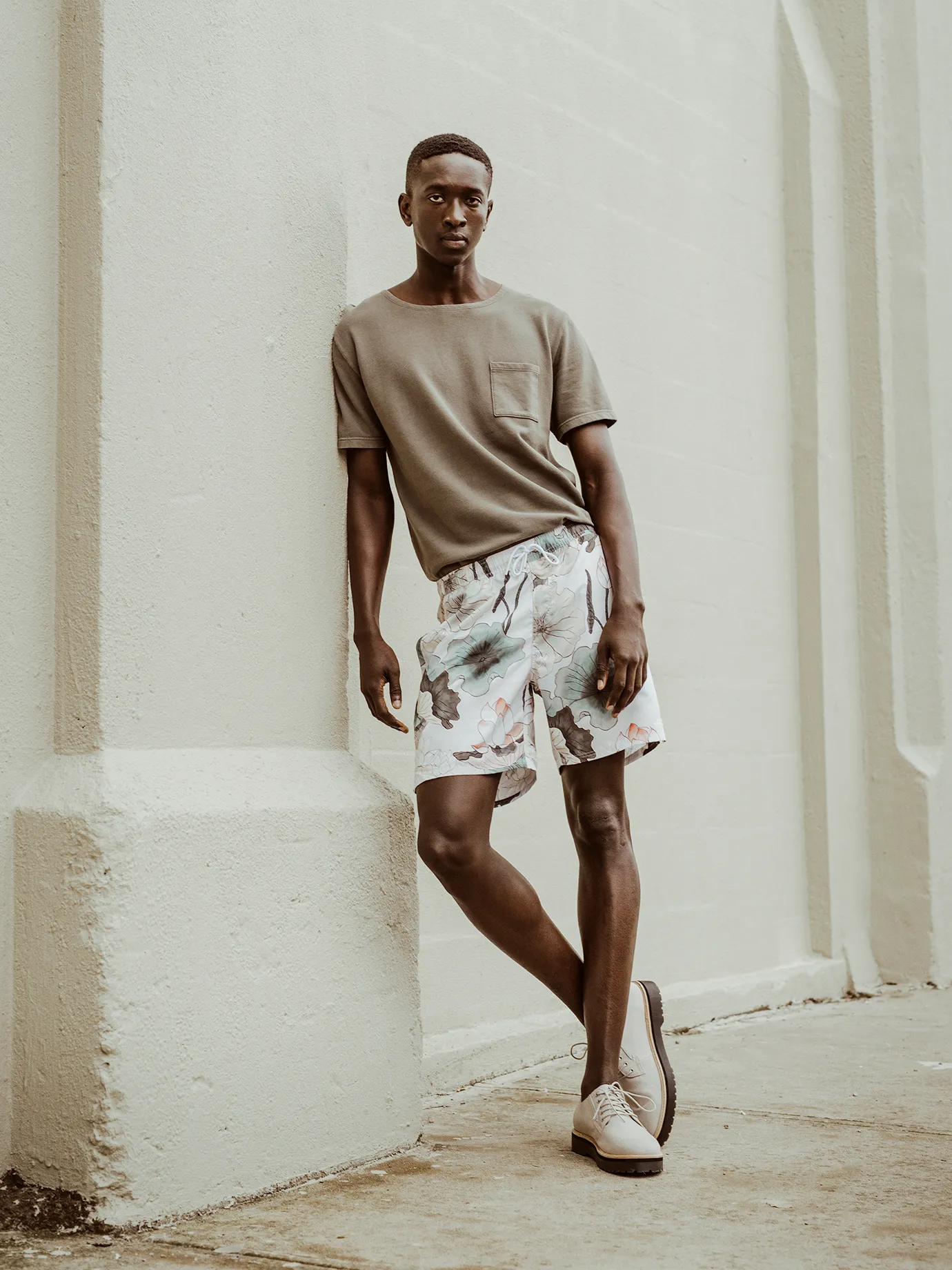 COLLETT PIGMENT DYE TEE, TIMOTHY LOTUS SWIM SHORTS