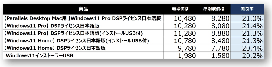 感謝祭価格