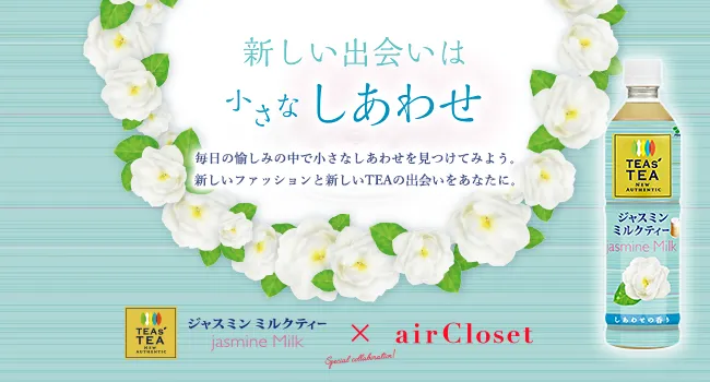 株式会社エアークローゼット(本社:東京、代表取締役:天沼 聰)は、2017年4月27日(木)より株式会社伊藤園(本社:東京、代表取締役社長:本庄 大介)が5月8日(月)に発売する新商品「TEAs’ TEA NEW AUTHENTIC ジャスミンミルクティー」と、“衣×食”のコラボレーション施策を開始します。