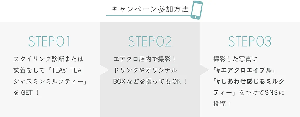 期間中、airClosetのプロのスタイリストによるパーソナルスタイリング体験&伊藤園「TEAs’ TEA NEW AUTHENTIC」の新商品「同 ジャスミンミルクティー」を体験された方で、SNS投稿キャンペーンにご参加いただいた方にプレゼントをご用意。