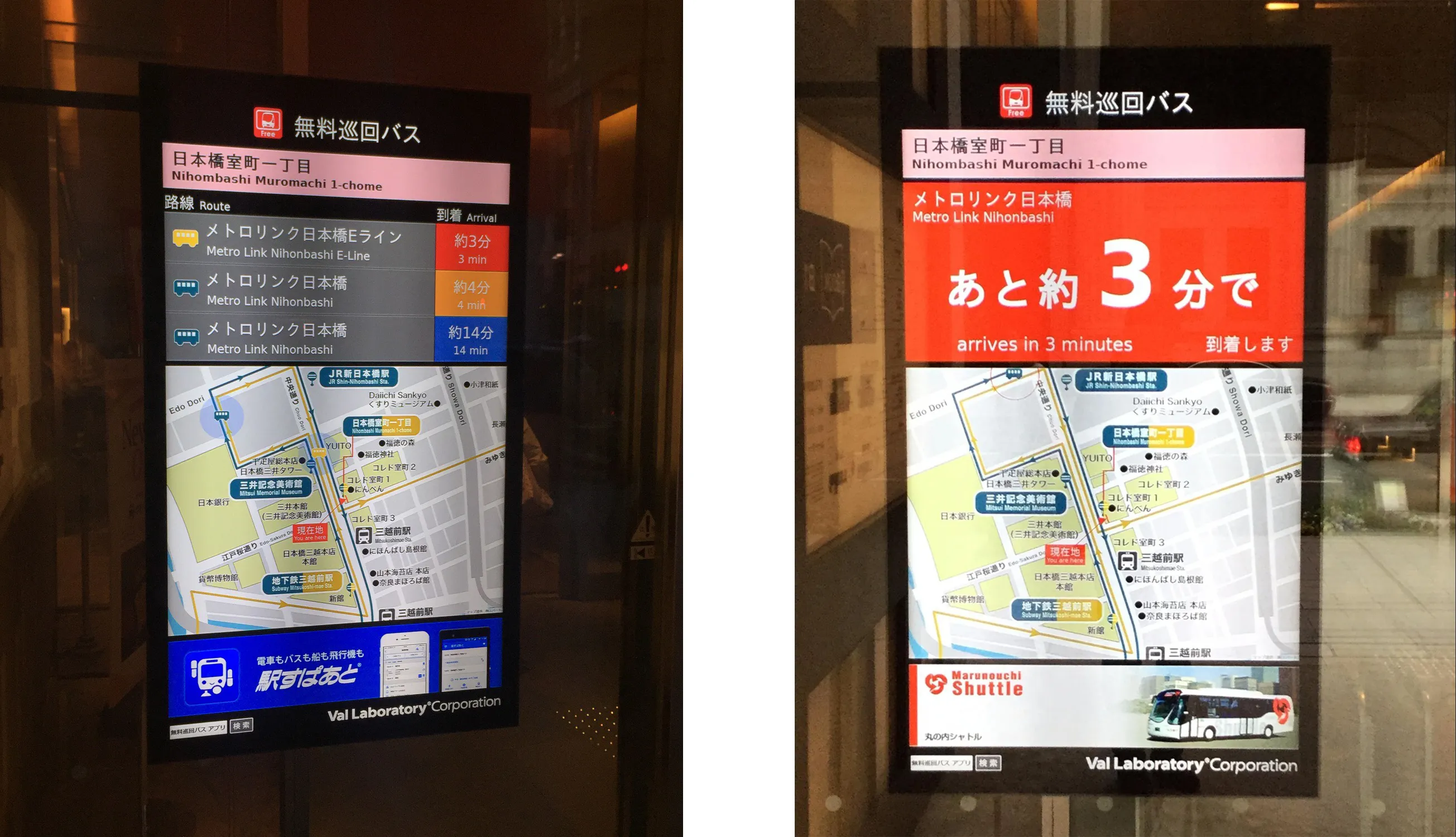 ローンチパートナーとして、無料巡回バスを運行する日の丸自動車興業株式会社様にご協力いただき、「SkyBrain」の開発・テストを進めてきました。現在、正式に導入いただき、同社の「丸の内シャトル」「メトロリンク日本橋」「メトロリンク日本橋Eライン」に対応するアプリや周辺施設のデジタルサイネージなどに活用されています。