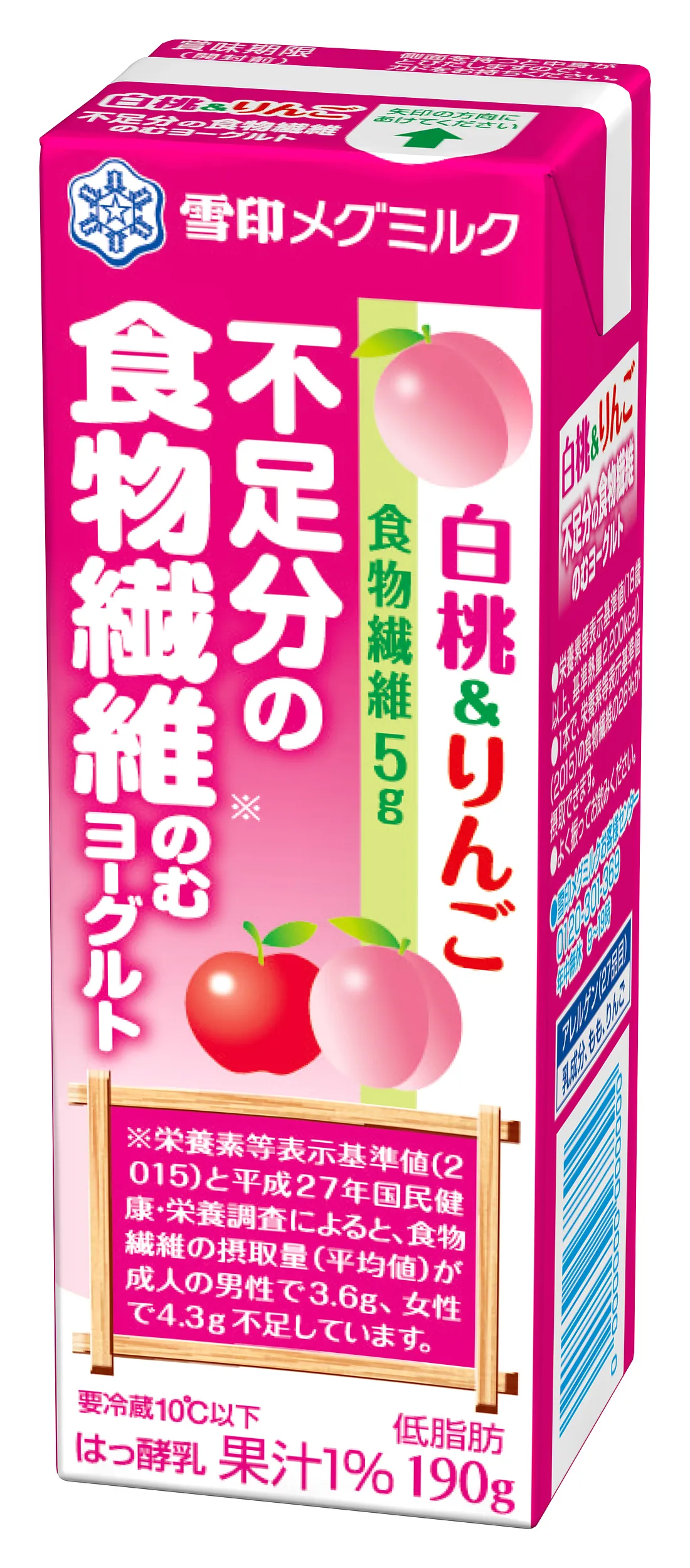 【雪印メグミルク】『白桃&りんご 不足分の食物繊維 のむヨーグルト』190g 2017年5月9日(火)より全国にて新発売