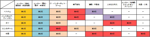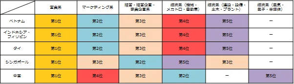 ★ 昨年よりもミドル人材を対象とした求人募集が増える見込みのある国は、「ベトナム」「インドネシア・フィリピン」「タイ」「シンガポール」「中国」。