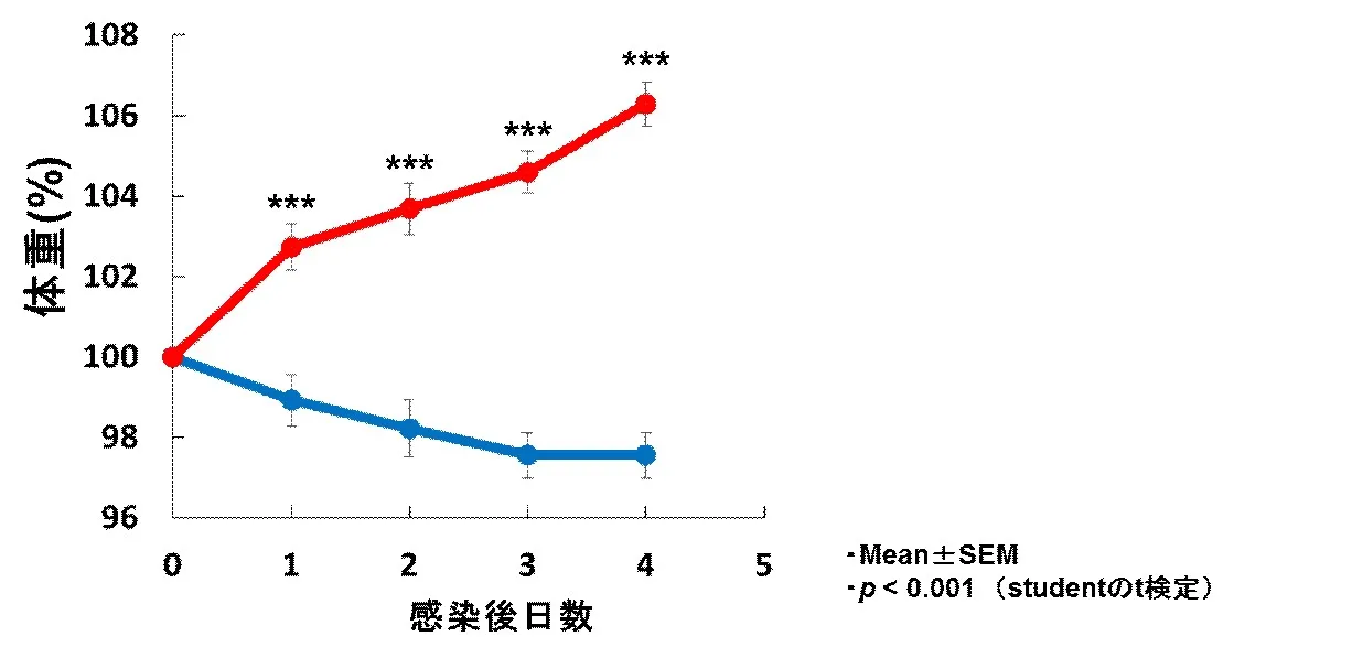 RSウイルス感染群で認められたRSウイルス感染による体重減少が、
