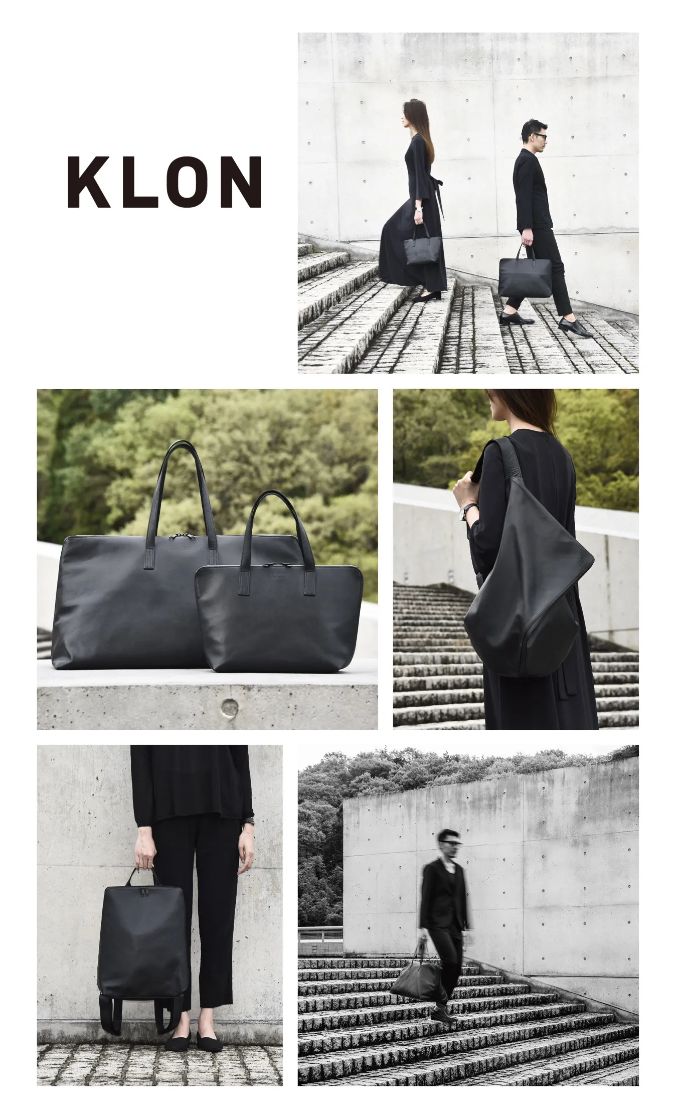 「KLON」では、究極にシンプルでありながらも、“モノ”としての存在感を決して殺さず、静かに主張する、どんなシーンでも使える上質さと軽快さを合わせ持つプロダクトをお届けします。メインとなるバッグは、フラットなフォルムにこだわり、外からファスナーを完全に隠し、レザーの縫製も極力控えています。そうすることで、逆にひとつの“モノ”として、存在感を放っています。今後、財布やパスケースなどの商品展開も予定しています。