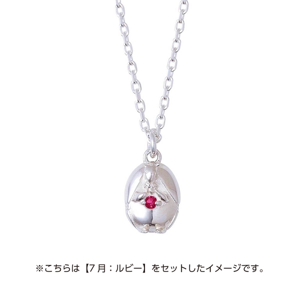 後ろ姿まで可愛らしく、ころんとしたシルエットのジョンが誕生石を大事に抱えてくれています。