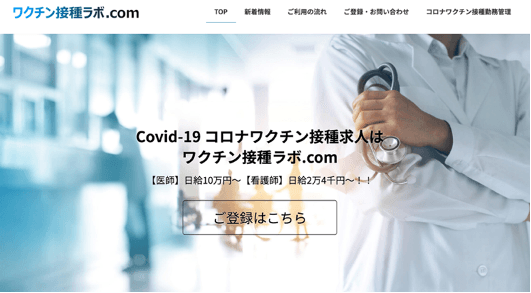 ヘルスケアをサポートする事業を展開する株式会社ヴェリタスジャパン(所在地:神奈川県横浜市、代表取締役:中川隆太郎、以下「当社」)は、自治体や医療機関でのワクチン接種業務サポートのためワクチン接種業務に携わる医師や看護師を募集する登録サイト「ワクチン接種ラボ.com」を開設しました。5月27日の募集開始より1000件を超える問い合わせをいただき、3日間で登録者数は700人を突破しましたことをお知らせいたします。