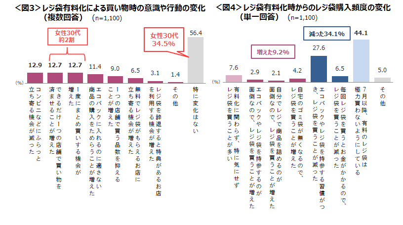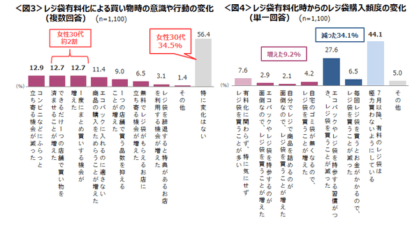 レジ袋有料化から3ヶ月、「買い物バッグ持参」が浸透 「まとめ買い」など、約4割が買い物意識・行動に変化