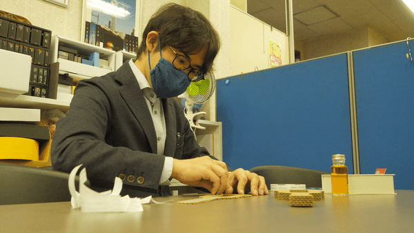 この日、依頼があったのはウイスキーのミニチュアボトルを入れるための“ギター型”の箱。オーダーメイドのため小林さん自らが設計図を作り、サイズを細かく調整していきます。パッケージを作る際に見据えているのはいつも“商品を受け取る人”のこと。何度もボトルを出し入れし、取り出しやすさなども確認していました。果たして完成した箱は・・・?