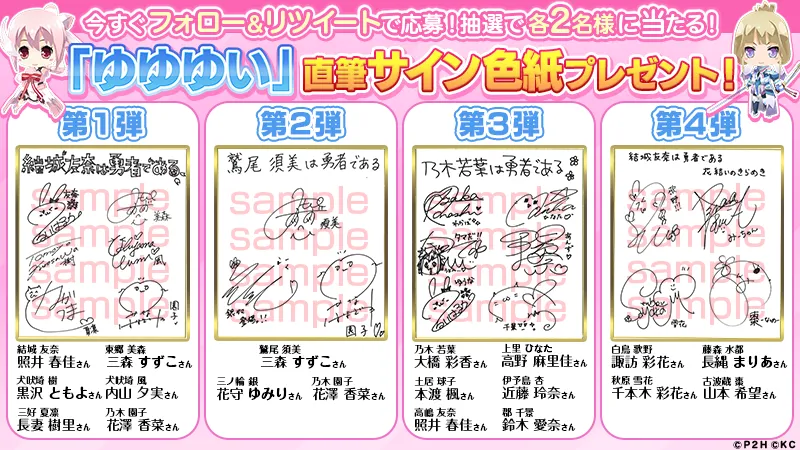 本作品に登場する声優のサイン色紙が当たるプレゼントキャンペーン、第1弾~第4弾をTwitterで実施中!