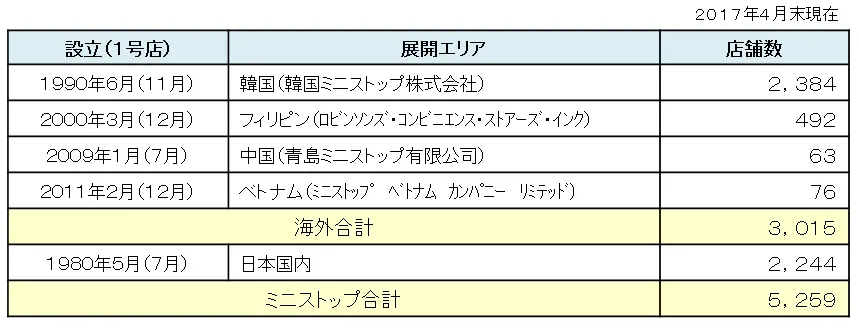 ミニストップ株式会社(本社:千葉県千葉市 代表取締役社長:宮下 直行、以下:ミニストップ)は、2017年4月末時点で海外店舗数が3,000店を達成いたしましたのでお知らせします。