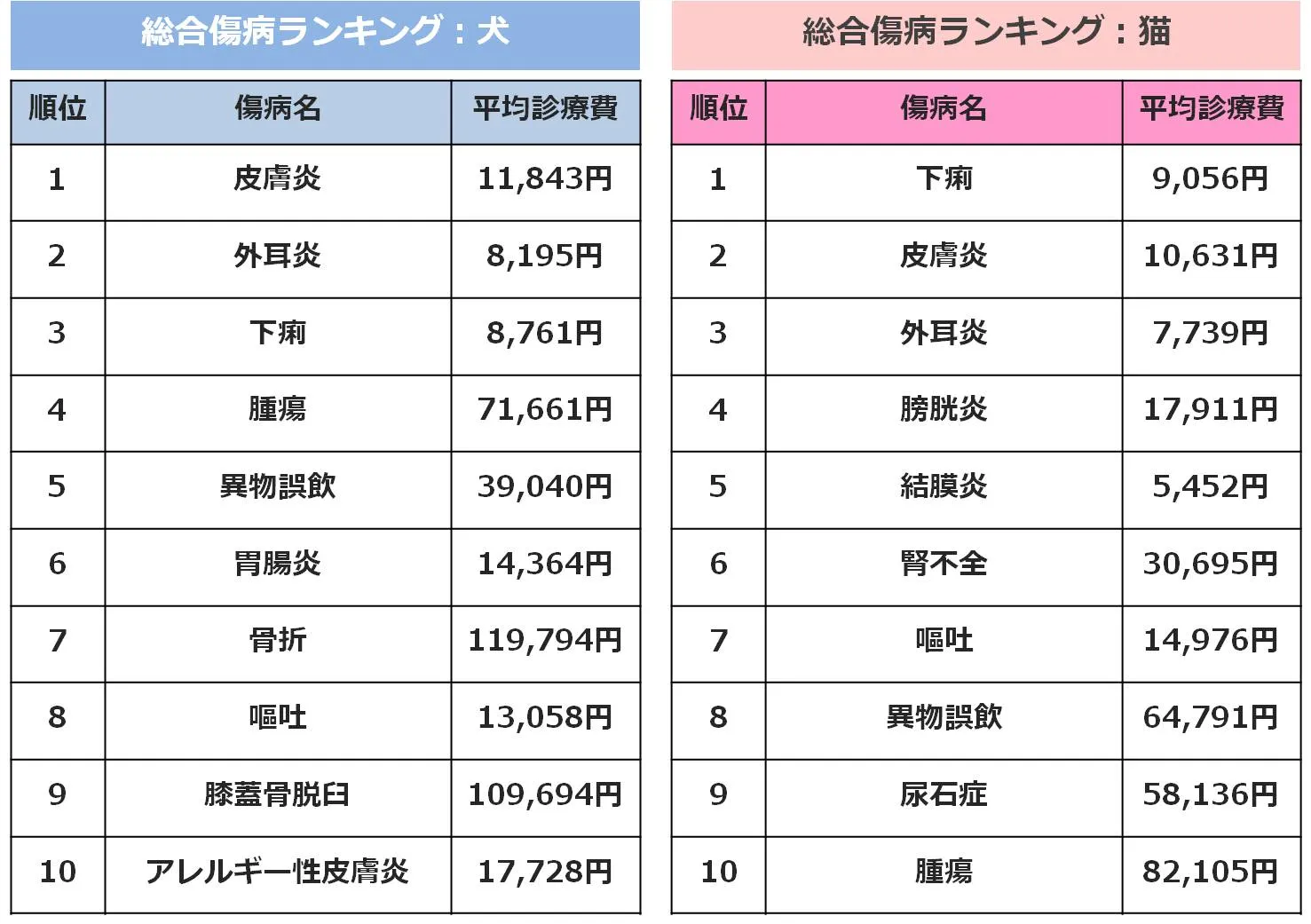 調査結果2:総合傷病ランキング(犬猫毎)