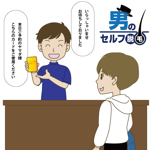 スタッフは受付にて、お客様に脱毛機に差し込む専用のカードをお渡し致します。