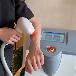 光が出るようになりますので、 照射ボタンを押して、ご自身で気になる部位を存分に照射して頂きます。