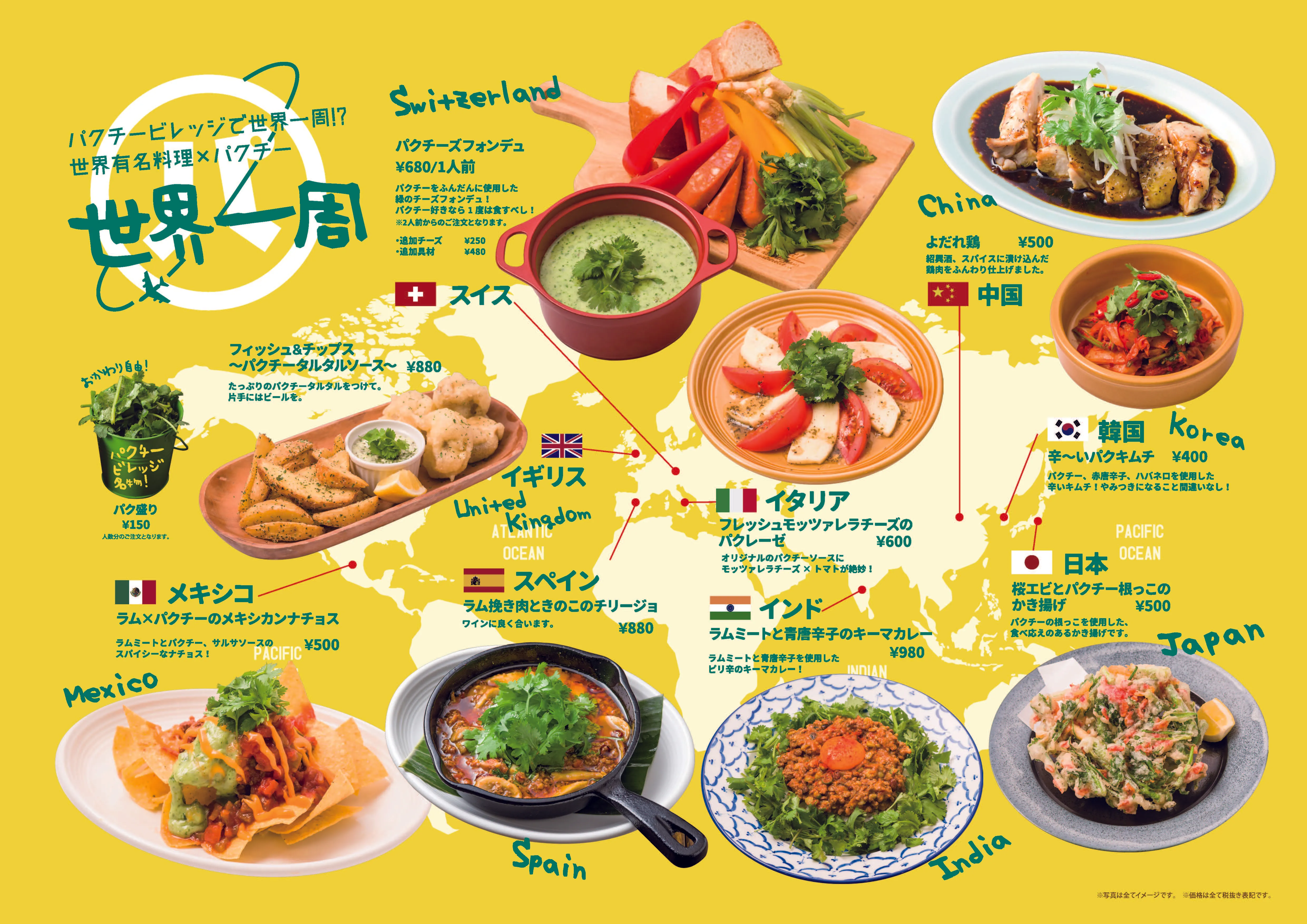 Pak-chee Village 新宿店は、世界の代表的な料理にパクチーを組み合わせた「パクチー×世界の料理フェア」を5月23日から約2か月間の期間限定にて開催いたします。パクチーがお好きな方には新しいパクチーの食べ方をご提案するとともに、パクチー初心者の方には食べやすいメニューラインアップといたしました。