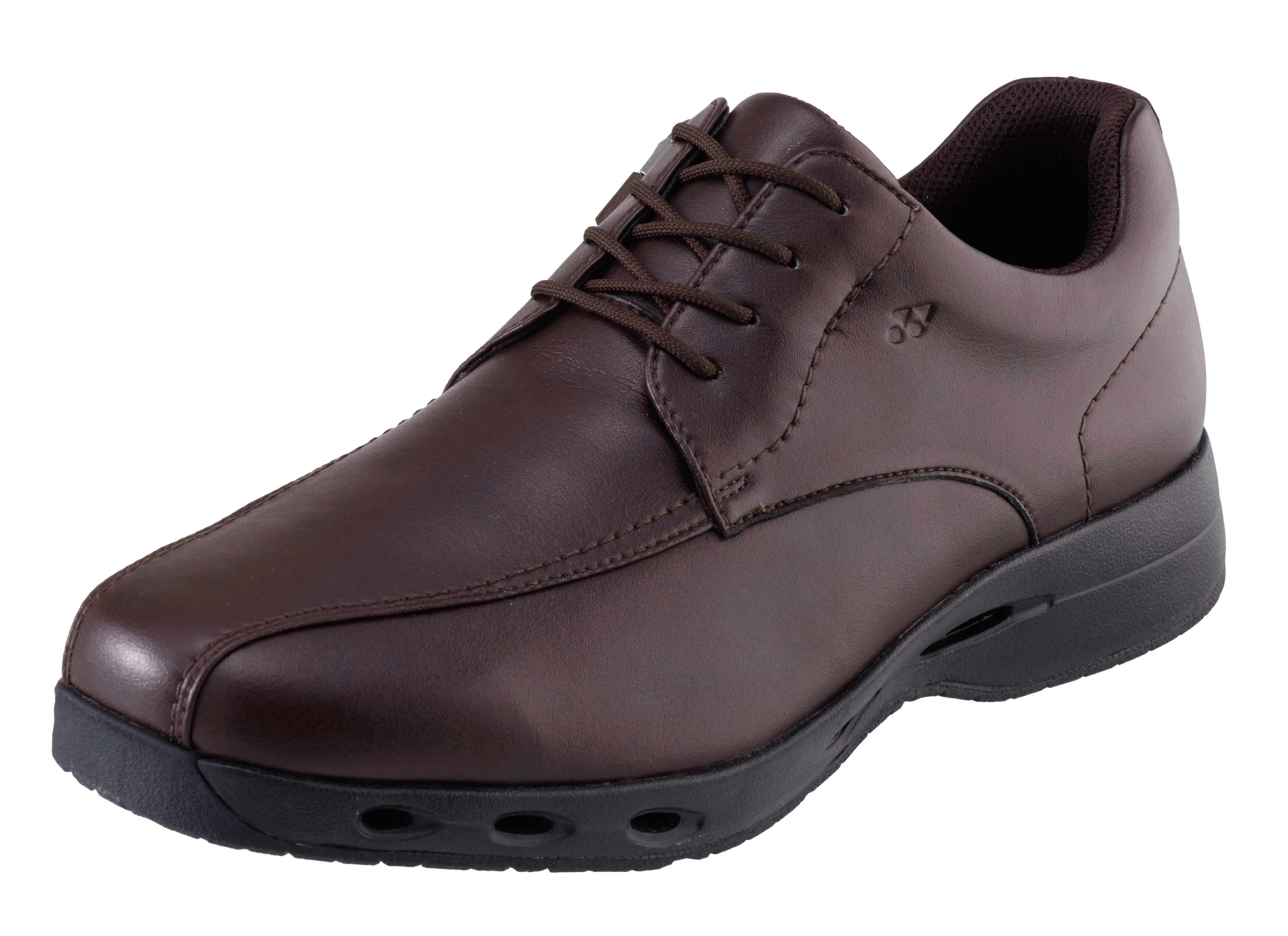 また、通勤などのビジネスシーンに最適な通気性と防水性を追求した「エアスルーソール」を搭載しました。ソール10ヶ所設けた通気孔により空気を循環させる構造で、靴内の湿気を逃しムレを軽減します。