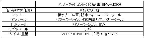 「エアスルーソール」搭載で通気防水性アップ パワークッションウォーキングシューズ MC90(男性用) 2017年5月下旬より発売