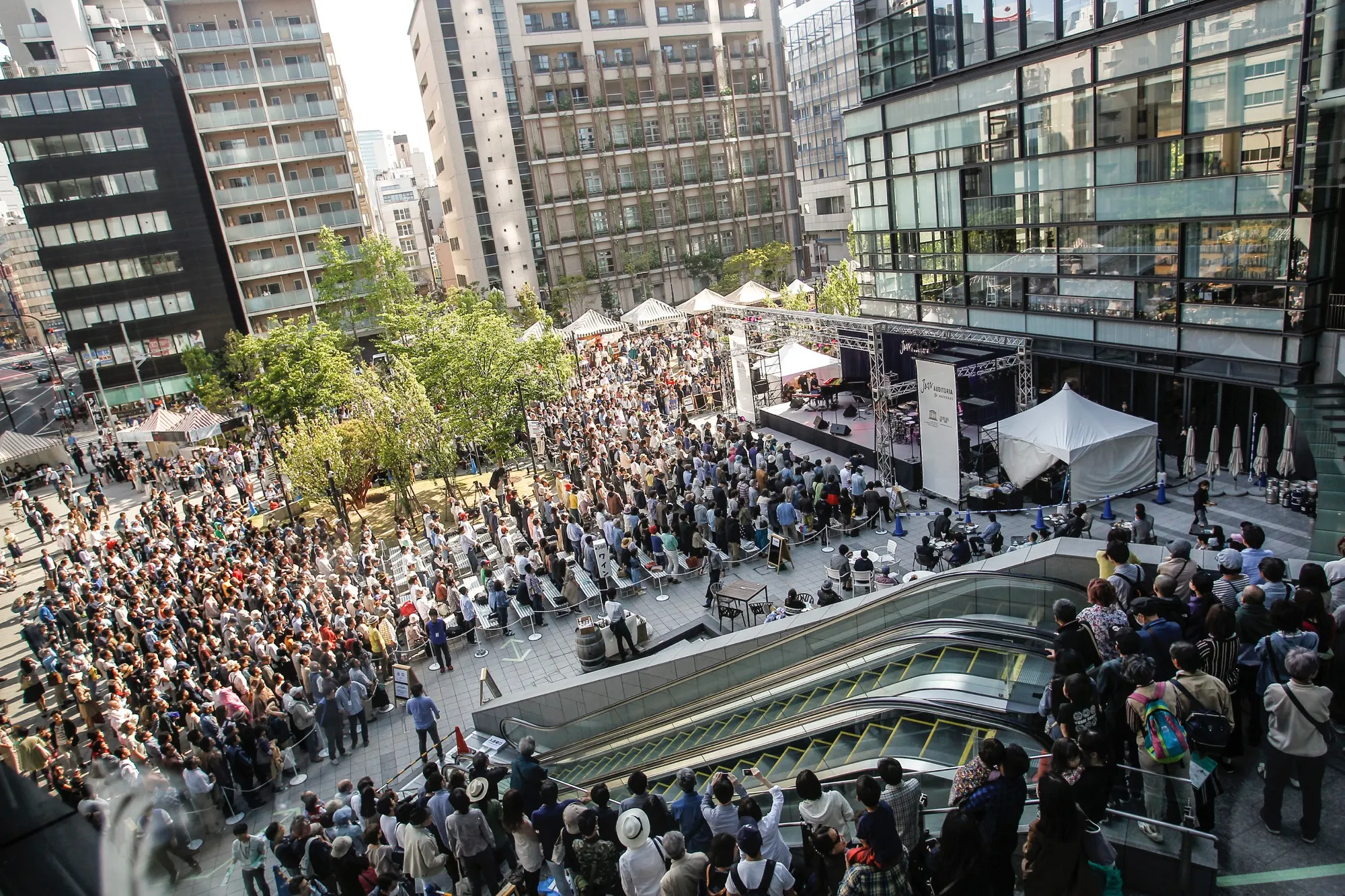 2017年5月18日 11:00一般社団法人淡路エリアマネジメントは、老舗ジャズクラブ「ブルーノート東京」と共催した、親子で気軽に楽しめる野外ジャズイベント『JAZZ AUDITORIA 2017 in WATERRAS』を、2017年4月28日(金)~30日(日)の3日間にわたって開催しました。神田淡路町の複合施設ワテラス(WATERRAS)にて毎年入場無料で開催される本イベントは、今回で5年目を迎えました。