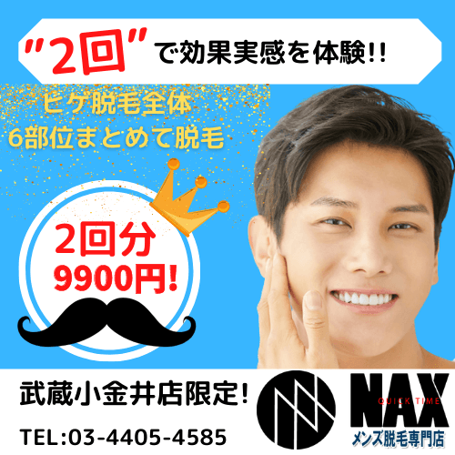 初めての脱毛はメンズNAX武蔵小金井 MEGAドン・キホーテ内2F店へ!