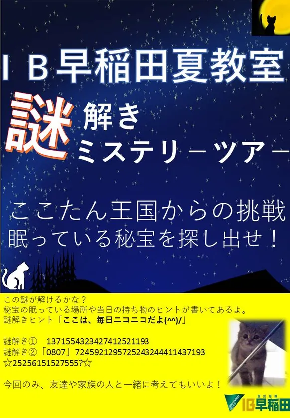 小学生対象!IB早稲田が行う2泊3日の今夏最大イベント 『謎解きミステリーツアー』8月7日開催