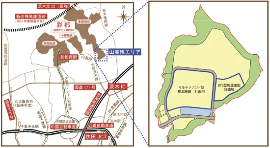阪急電鉄と三菱地所は、このたび大阪府茨木市の彩都東部地区山麓線エリアにおいて、大規模物流施設開発計画「(仮称)彩都もえぎ物流施設計画」を共同で推進することになりました。