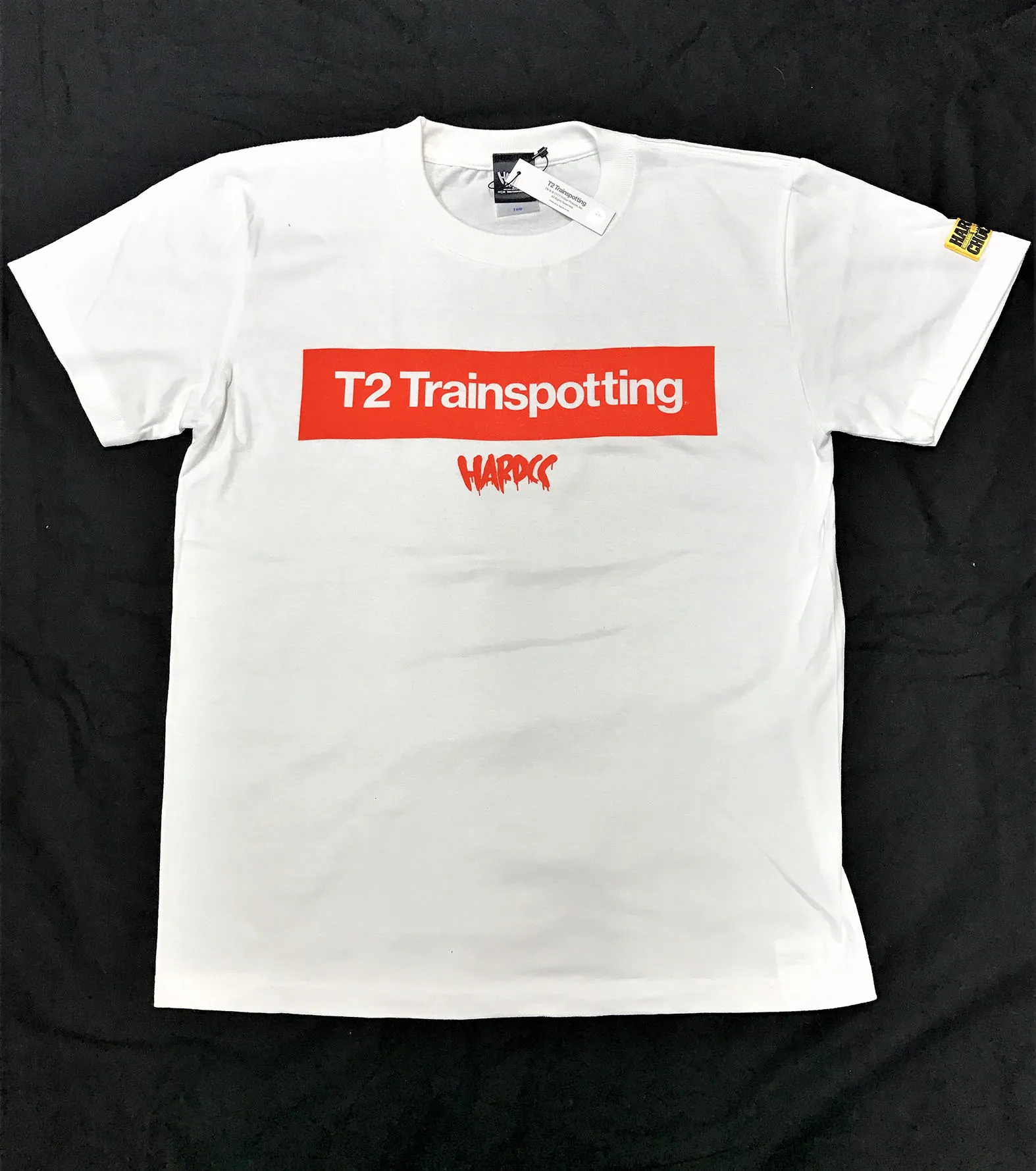 今回登場するハードコアチョコレート×「T2 トレインスポッティング」のコラボTシャツは徹底的にシンプルなデザインで2種類をご用意。ホワイトボディに映えるイメージカラーのオレンジが鮮烈な1枚と、イギリス色が強めのデザインのブラックボディに仕上げました。