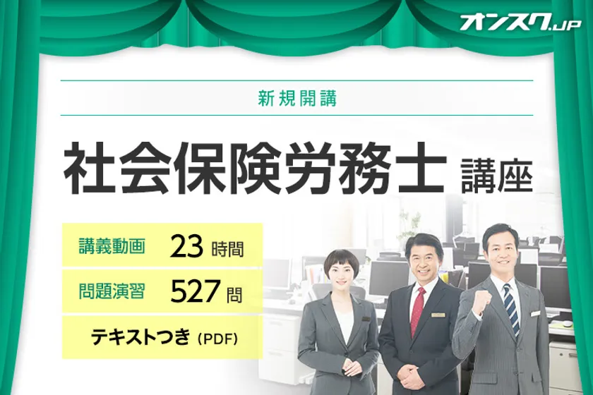 『オンスク.JP』では宅建、日商簿記3級など13講座の学習サービス全てを「ウケホーダイ」月額980円(税抜)で提供しておりましたが、この度、「社会保険労務士」の講座を新たにラインナップに追加しました。