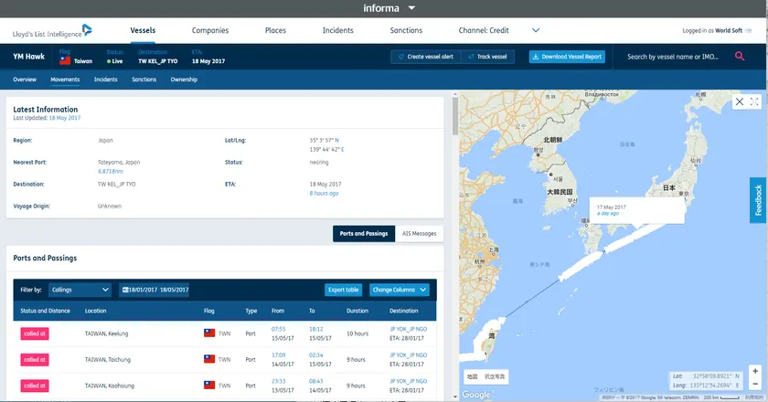 ロイズ・リスト・インテリジェンスは300年以上海運関連情報の提供を続けている老舗の情報サービスで、船舶動静データ・AIS(Automatic Identification System 自動船舶識別装置)情報受信履歴・各種船舶情報(船主・船籍・運航者・管理会社等)・港湾情報・企業信用情報等の詳細情報を提供しています。これらに加えて原油海運情報の分析や個別のオーダーメード情報・調査、金融・保険・法律等の情報提供も好評を得ています。不審船発見・調査のサービスも提供しており、各国の沿岸警備隊にても活用されています。
