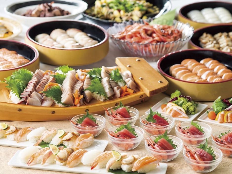 もちろん鰻の蒲焼以外にも、卓上で火にかけるアツアツのすき焼きや、お寿司、ご当地料理なども食べ放題。ここでしか味わえないお食事を存分にご堪能ください。