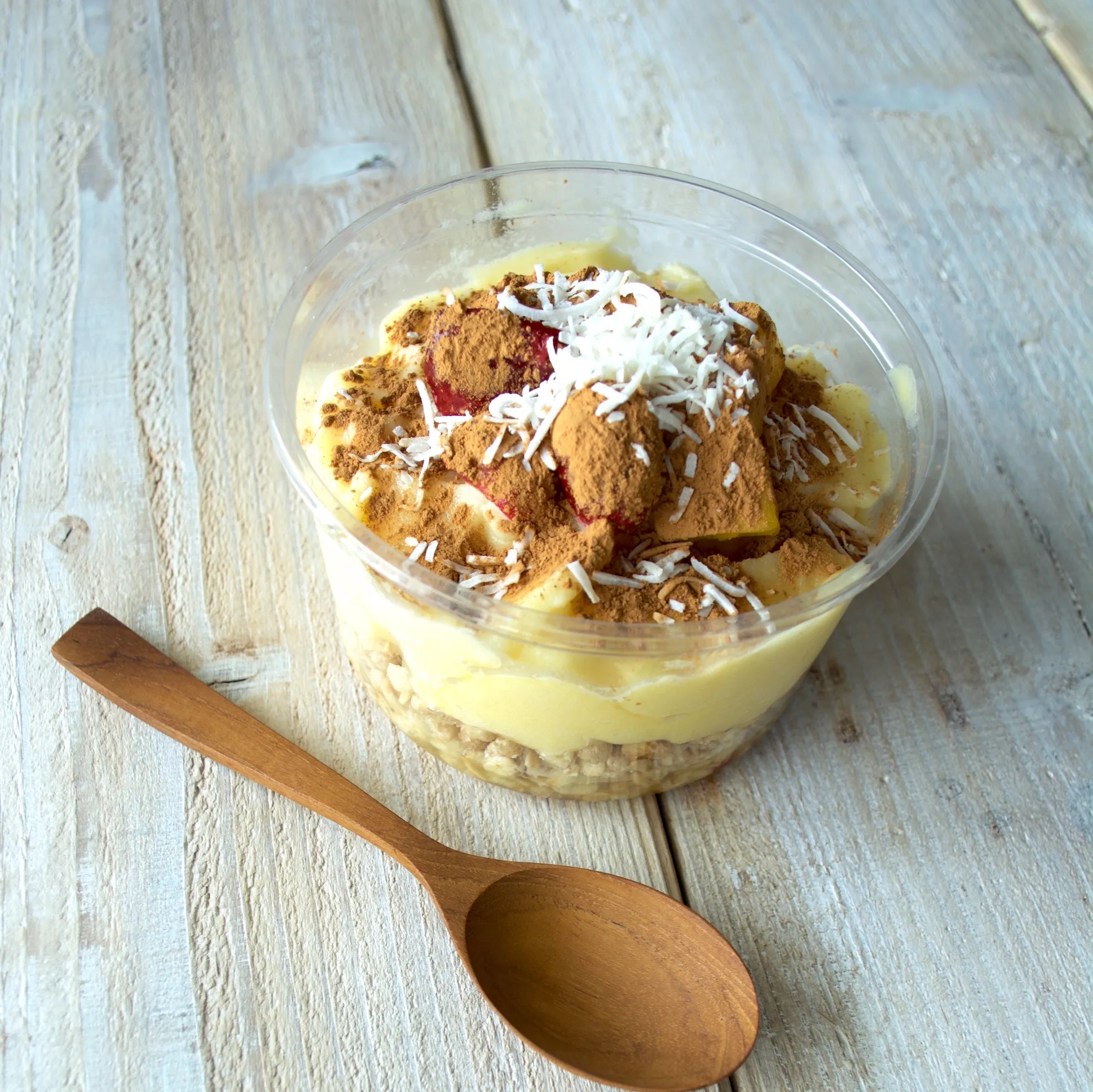 パッションフルーツ、レモン、パイナップル。南国の甘酸っぱいフルーツを濃厚にブレンドしたリッチなスムージーをベースに、グラノーラ、マンゴー、ストロベリー、ココナッツを贅沢にトッピングしました。