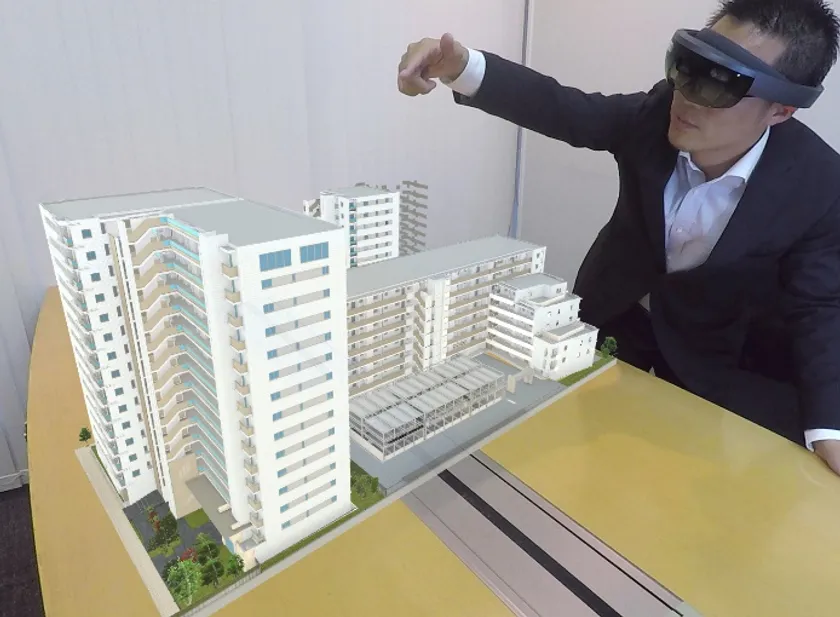 日本初!マイクロソフト ホロレンズをマンション販売に採用 マンション建物の建設予定地をHoloLensで眺めると、 原寸大の建物が出現 ~「プラウドシティ越中島」より順次採用予定~