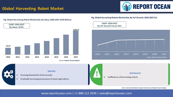世界の収穫ロボット市場規模は、2027年までに1兆8279億米ドルに達すると予測されています。レポート「収穫ロボット市場シェア、サイズ、トレンド、産業分析レポート:ロボットタイプ別(半自律型ロボット、完全自律型ロボット)、収穫タイプ別(果物収穫、野菜収穫、穀物収穫、その他)、用途別(屋外農業、温室農業)、地域別、セグメント別、予測、2020-2027年」は、現在の市場ダイナミクスを詳細に把握し、今後の市場成長に関する分析を提供しています。