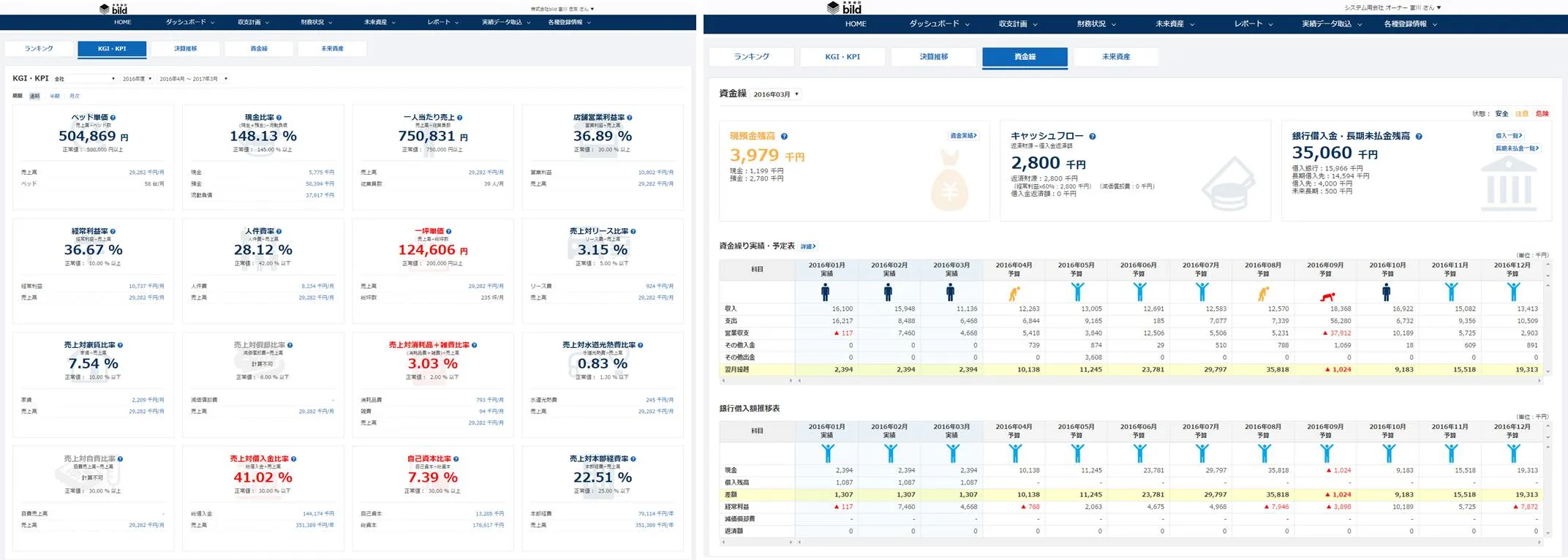 予算管理、KPI&KGI、収支計画(短期・中長期)、資金繰り、ランキング、一株当たり株価、年計表、予実進捗表など様々な数値をタイムリーに把握することができます。