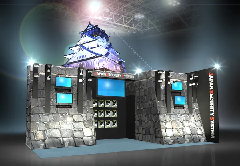 日本防犯システムのブースには、「石垣を越えさせない!」をテーマに、石垣とお城でブースの演出を行います。武士たちが自らの陣地を守るために築き上げた強固なお城は、日本防犯システムが最も大事にする「日本のモノづくりへのこだわり」の象徴です。製品の組み立てから検査まで、あえて人の手で丁寧に行う日本防犯システムのこだわりを体感することができます。