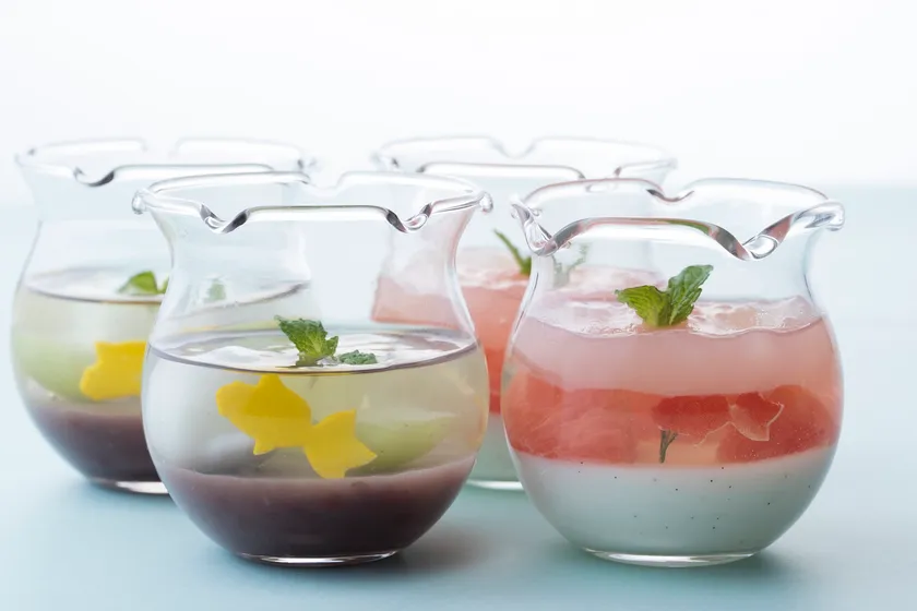 グラス内で、涼し気にひらひらと舞い泳ぐ“金魚”をイメージした2種のスイーツをご用意いたします。
