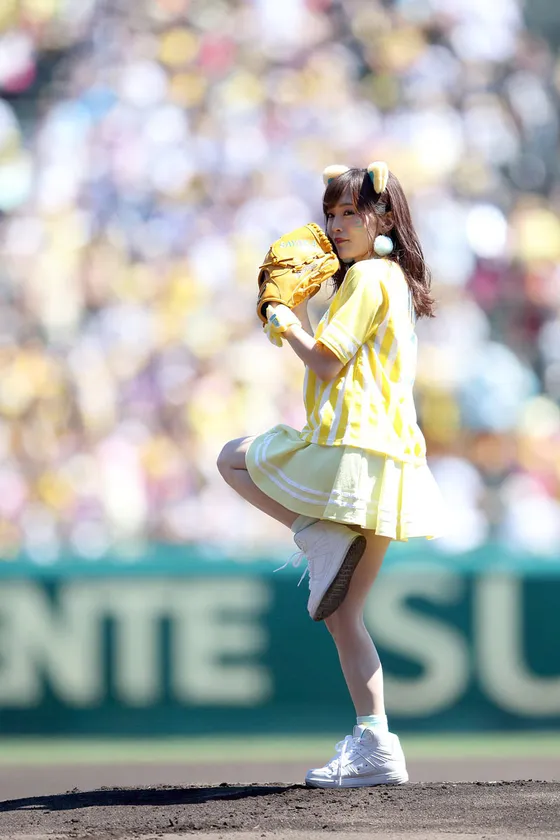 TORACO応援隊長のNMB48 川上千尋さん、山本彩さんがそれぞれファーストピッチセレモニー、始球式に登場。TORACO DAYの甲子園球場のスタンドを盛り上げました。