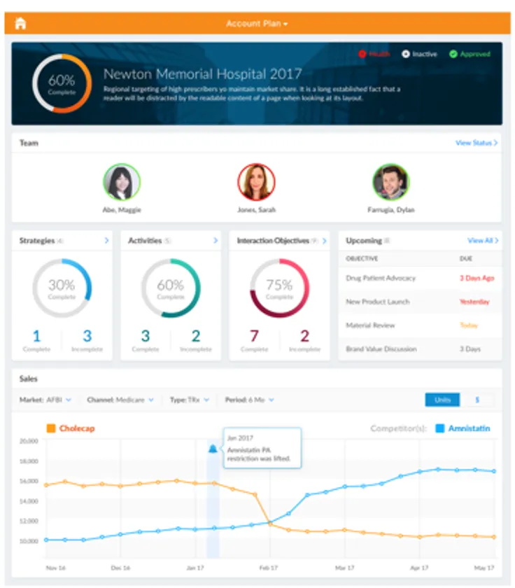 Veeva CRM MyInsightsは、ダッシュボードを通じて、受注管理、アカウントの詳細情報、テリトリーマネジメント、キー・オピニオン・リーダー(KOL)のプロフィール、アカウント・プランニングなどの ライブラリを構築していくことができます。また標準的なHTML/JavaScript規格に準拠しているため、それぞれの役割や活動に応じた新規データやプレビルト型データの可視化を容易に図ることができます。
