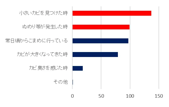 カビが目に見えるようになってから対策を行う方が多数!