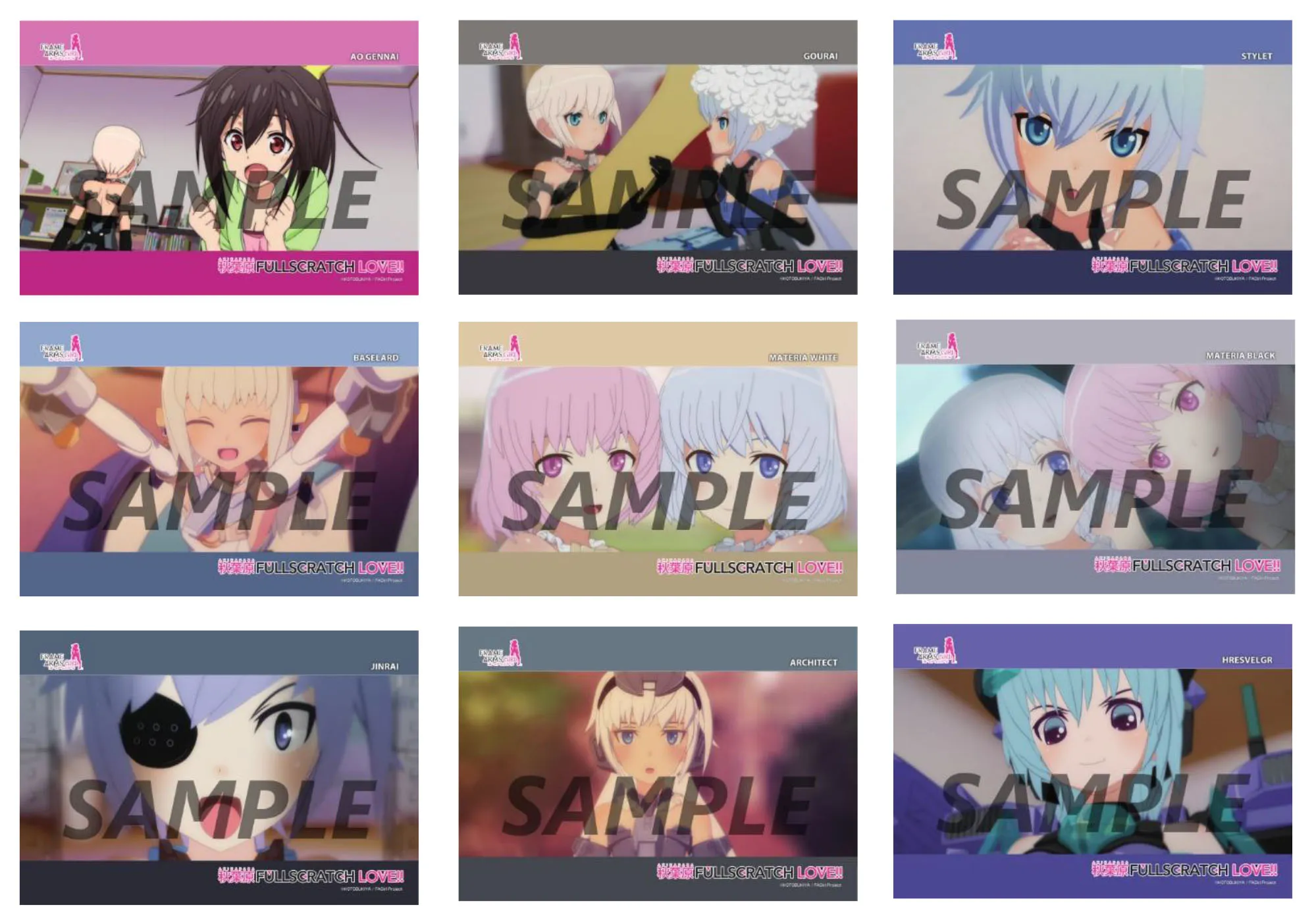 キャラクター:源内あお、FAガール(轟雷、スティレット、バーゼラルド、マテリア姉妹、迅雷、アーキテクト、フレズヴェルク)