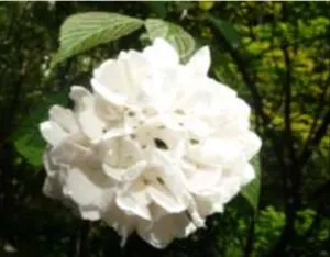古くから栽培される観賞用の落葉低木で、幹の高さは1~3mになります。花付きがよく、枝先はアジサイに似ており、初夏の青い空を背景に、咲き初めの淡い緑色から次第に、直径10cmを超える真っ白なボール状に花が多数咲きます。通常は、4~5月に見頃を迎えますが、標高約800mに位置する当館では、神戸などの市街地に比べ年間の平均気温が5~6℃低いため、1ヶ月ほど遅く見頃を迎えます。 当館に咲く「オオデマリ」は、現在見頃で、6月初旬までお楽しみいただける見込みです。