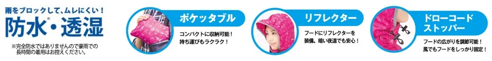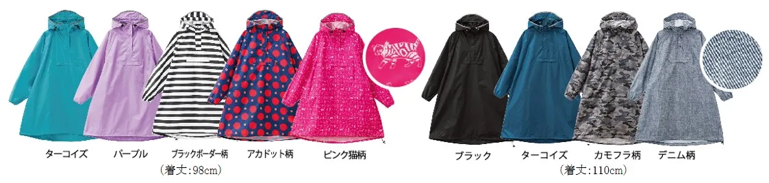また、雨の日の自転車通勤や通学にも重宝する、「レインポンチョ」もお勧めです。