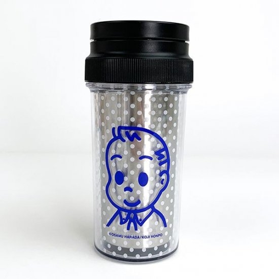 ドット柄がキュートな、オサムグッズのタンブラーです。クリアなボトルの中にステンレス製のタンブラーがセットされていて、ジャックのイラストが入っています。